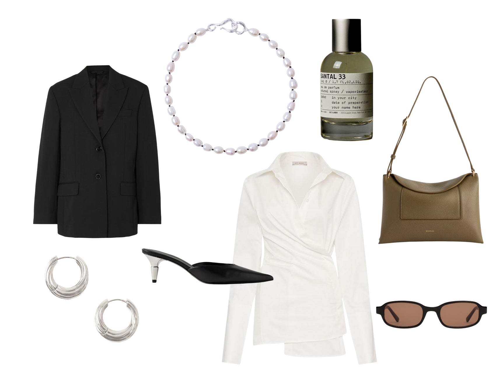The question of what to wear to a Christmas party at work demands an answer which balances professional polish with celebratory sparkle. To achieve this, avoid overt statements and instead opt for sharp tailoring that quietly evokes sophistication. This Acne Studios blazer offers enduring appeal for office-to-evening wear. Elevate the look with subtle glimmers, from your accessories to your shoes. These silver-heeled mules by Proenza Schouler deliver a flash of sculptural shine to accompany our textured Roma Hoops and Bella Necklace, both in silver.