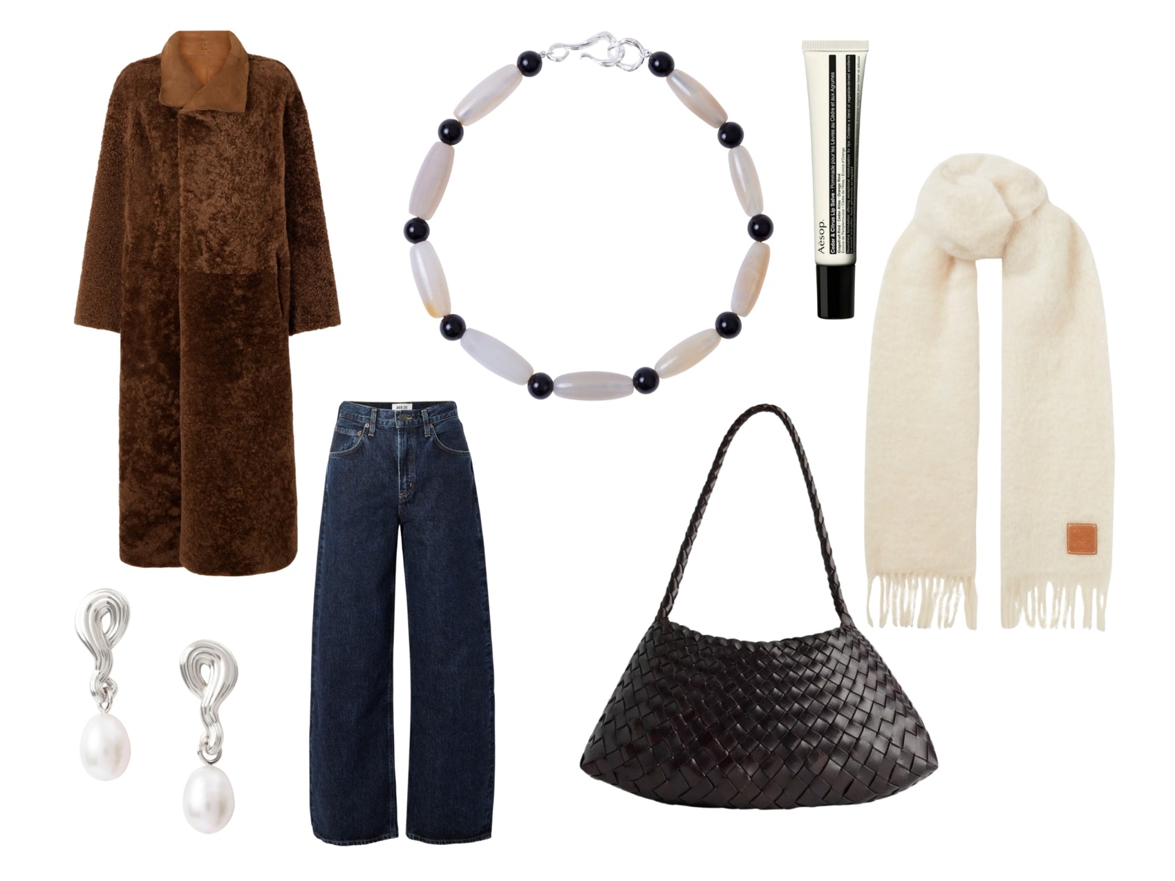 Nestled somewhere between the glitzy evening soirées, a more relaxed daytime affair inevitably appears – perhaps a fireside lunch with close family and little ones. For gatherings in daylight, prioritise pieces that feel easy yet true to your style. To make a statement upon arrival, this reversible Nour Hammour coat forms a base for soft, loose-fitting layers that photograph beautifully without looking overdone. Toteme’s tie-front turtleneck brings a subtle twist to a timeless winter essential, offering a fresh take on cold-weather dressing. Tie the look together with opulent festive jewellery pieces: our Odette Necklace and Sandra Earrings, both in 925 sterling silver, feel destined for this occasion.